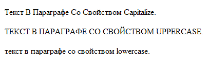 И изменим таблицу стилей, задав для каждого абзаца свойство text-transform: