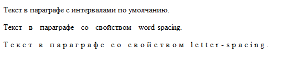- word-spacing - задает интервал между словами.