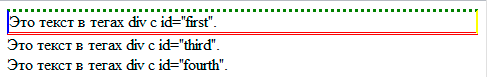 Давайте зададим нашему первому div-у разные границы, чтобы посмотреть, как это работает: