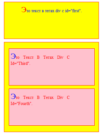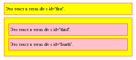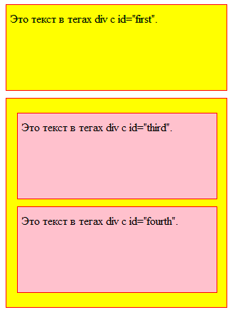 Как видите, содержимое тегов div располагается с абзацным отступом, т.е. одно под другим. На примере этой страницы мы и будем рассматривать свойства блоков.