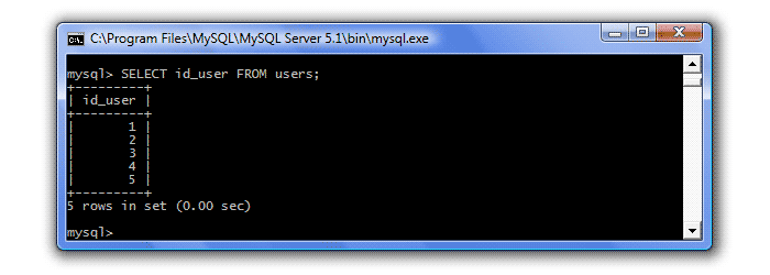 Вот и все наши данные, которые мы вносили в эту таблицу. Но предположим, что мы хотим посмотреть только столбец id_user (например, в прошлом уроке, нам надо было для заполнения таблицы topics (темы) знать, какие id_user есть в таблице users). Для этого в запросе мы укажем имя этого столбца: