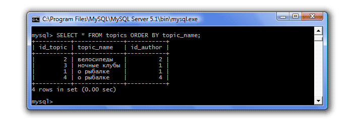 Аналогично, вы можете посмотреть, какие данные содержат и другие наши таблицы. Давайте посмотрим, какие у нас существуют темы: