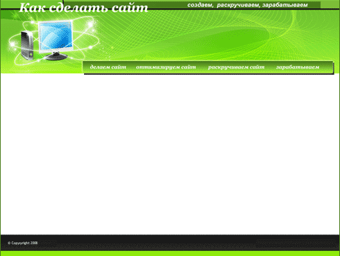 Если вы читали Основные этапы создания сайтов, то знаете, что после этапа создания макета сайта получившуюся картинку нужно перенести в HTML. Этому процессу и посвящены эти два урока.Сайт, на котором вы сейчас находитесь, мог бы иметь и другой дизайн. Предположим, у нас есть вот такой макет: