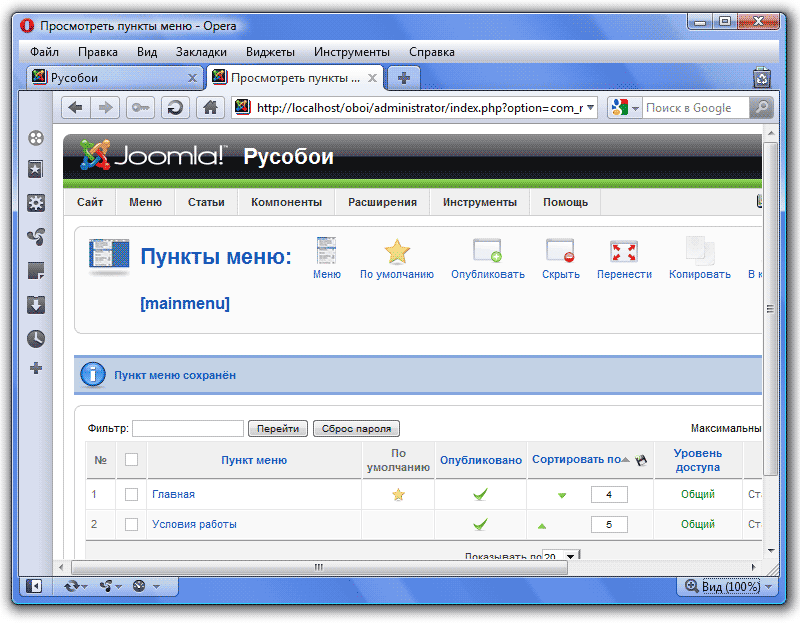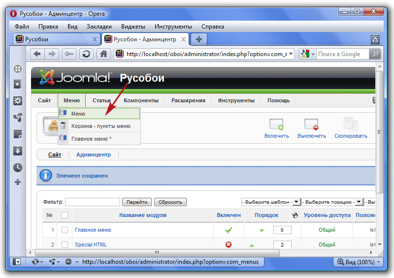 Чтобы создать в Joomla меню, необходимо: