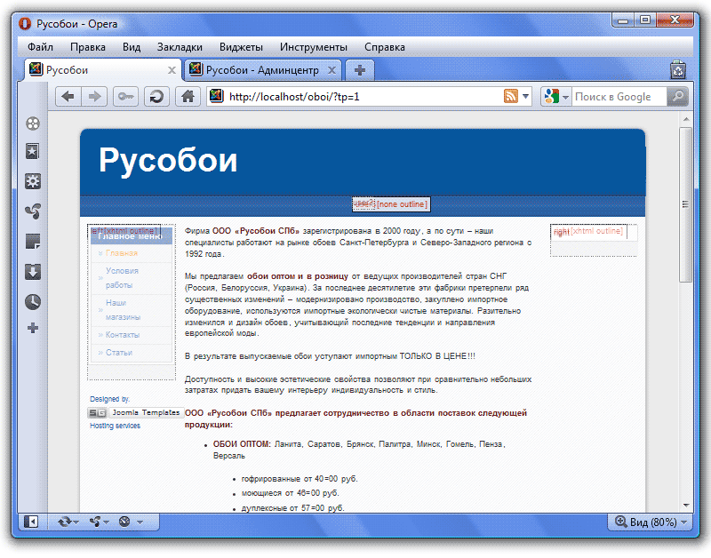 Больше ничего трогать не будем, нажимаем на кнопку Сохранить. Теперь идем на наш сайт, стираем в адресной строке параметр tp=1, обновляем и видим, что наше Главное меню теперь располагается там, где мы и хотели