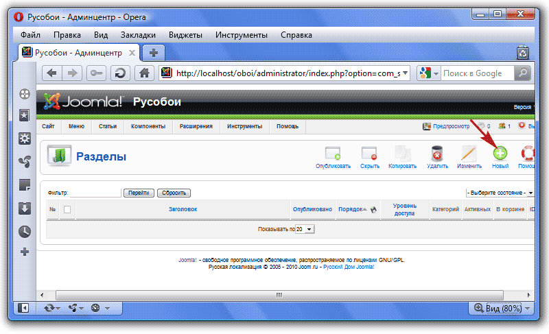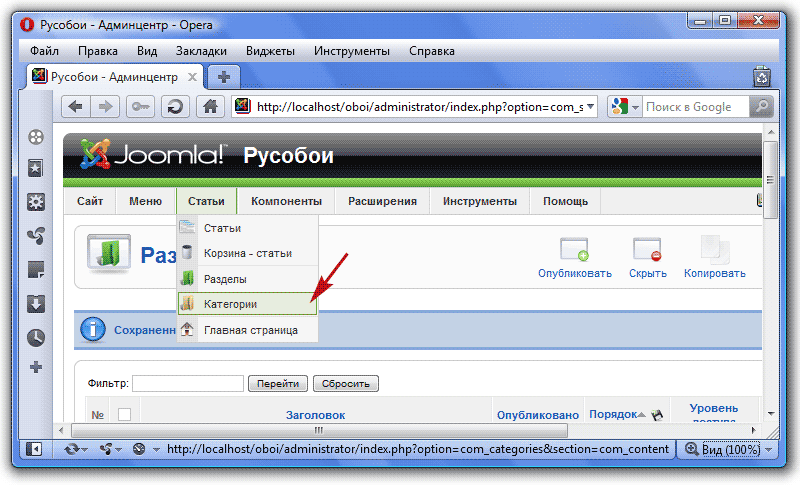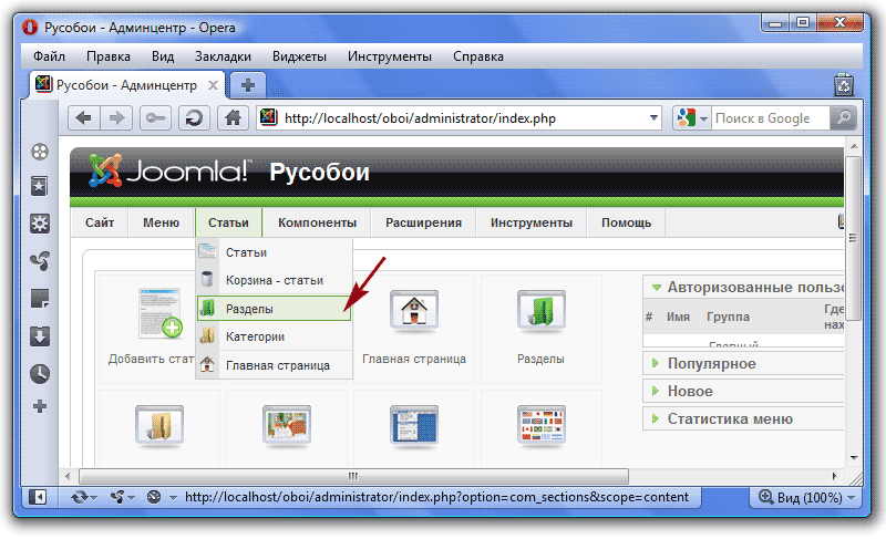 Для этого идем в администраторскую зону, в Статьи - Разделы: