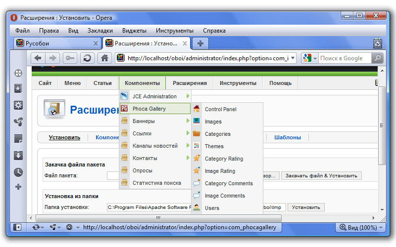 Joomla - Урок 12. Устанавливаем Phoca Gallery