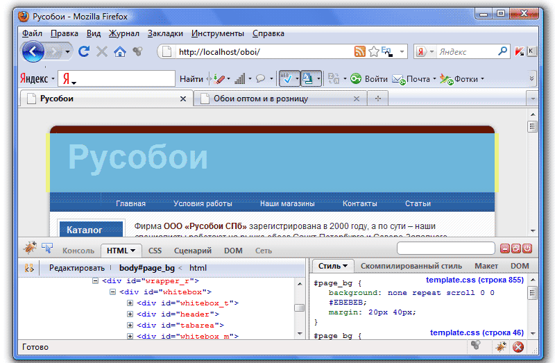 Все появилось, нам осталось только добавить стили для наших div-ов на странице template.css, чтобы они отображались, как на сайте-образце: