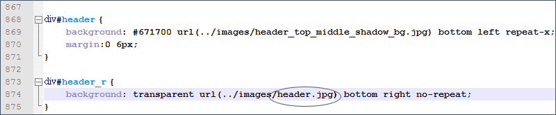 Это изображение мы и сохраняем, как header.jpg (правой кнопкой мыши - Сохранить изображение как). Теперь идем на страницу стилей и меняем название изображения в теге <div id="header_r">: