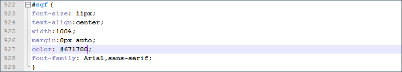Мы также уберем этот код, но в теге с id="sgf" напишем название фирмы и значок копирайта: