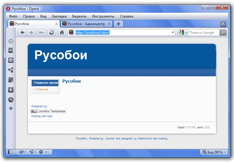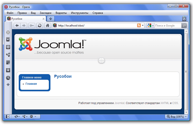 Открываем браузер и набираем адрес нашего сайта - http://localhost/oboi. Сейчас наш сайт выглядит так: