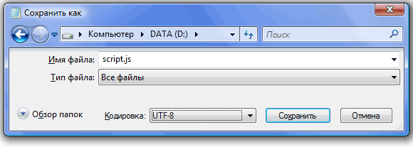 Создайте в блокноте страницу (пока пустую) и сохраните ее как script.js в ту же папку, где лежит html-страница: