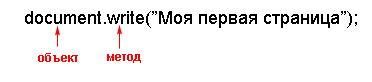 Давайте разберемся как это работает. Браузер читает нашу html-страницу, видит оператор для выполнения document.write("Моя первая страница."); и выполняет его. Рассмотрим из чего состоит сам оператор (инструкция):