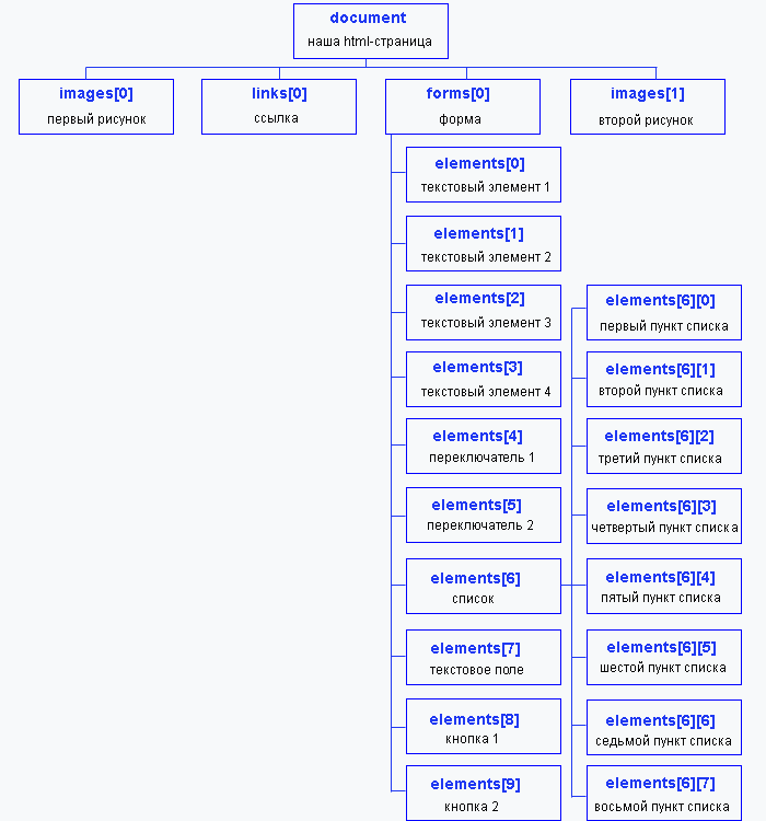 Иерархия объектов, создаваемая этой html-страницей, выглядит так:
