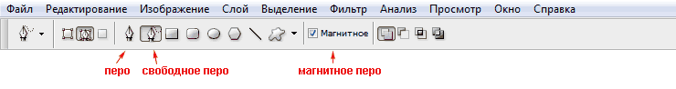 Инструмент "Свободное перо" позволяет рисовать так же, как это делается карандашом на бумаге, поэтому мы не будем его рассматривать. Инструменту "Магнитное перо" посвящен следующий урок. А сегодня мы познакомимся с инструментом "Перо".