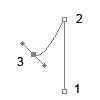 - Щелкаем в точке 3 и, не отпуская, протягиваем вниз и влево до образования дуги нужной формы.