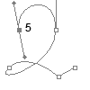 - Щелкаем в точке 5 и, не отпуская, протягиваем вниз и вправо до образования дуги нужной формы.