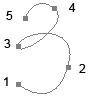- Щелкаем в точке 4 и, не отпуская, протягиваем вверх до образования дуги нужной формы.