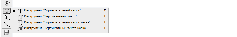 - отвечает за текст. Нажмите и удерживайте левую клавишу мыши на этом инструменте,