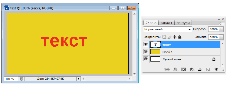 Обратите внимание на палитру слоев, слой текст помечен буквой Т, а именем слоя является введенный текст.