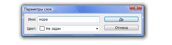 Создадим два новых слоя: один назовем "конь", другой - "море", причем слой -Море- должен находится под слоем -Конь-. Чтобы слою дать название, щелкните правой кнопкой мыши по слою, в открывшемся контекстном меню выберите -Параметры слоя- (Layer Properties). Откроется окно параметров, где и нужно задать имя: