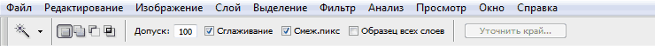 пикселы одного оттенка. На панели параметров этого инструмента выберите следующие значения: