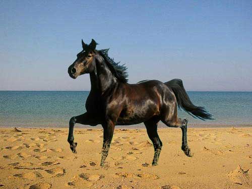 - Разместить на разных слоях нового файла изображения коня и моря.