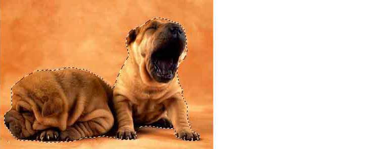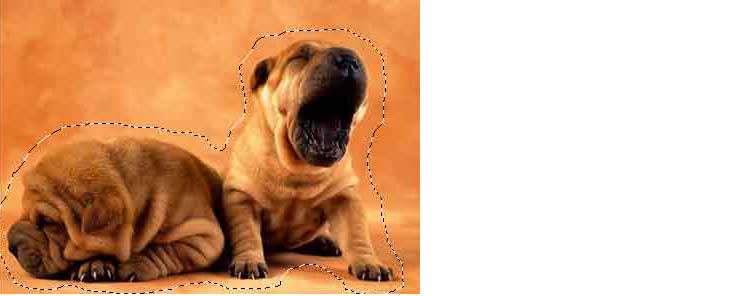 Для этого подведите курсор мыши к собачкам, нажмите левую клавишу мыши и, не отпуская, тяните линию вокруг собачек. Как только вы замкнете линию, она превратится в привычное выделение.