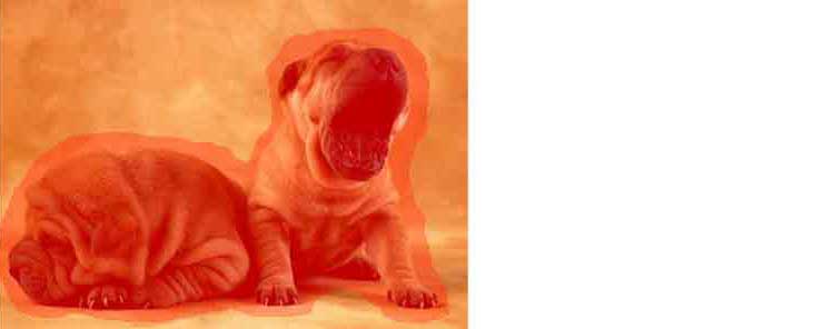 Сделайте основным белый цвет, мы будем удалять лишнее из нашего выделения. Теперь ведите кисточкой, убирая все лишнее, вокруг собачек. Когда закончите щелкните по иконке -быстрая маска-, наложение цвета исчезнет и появится привычное выделение.