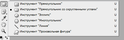 Нажмите левой клавишей мыши на инструмент -фигуры- на панели инструментов, откроется окно выбора инструмента: