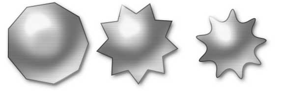 Третий девятиугольник имеет радиус 3см, глубина лучей - 50%, стоят все галочки.