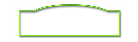 Например, создайте фигуру прямоугольник, теперь на панели параметров щелкните по иконке "добавить к области фигуры", а теперь выберите фигуру эллипс. Подведите курсор мыши к верхней границе нашего прямоугольника, нажмите левую клавишу мыши и, не отпуская, растяните эллипс. Должно получится примерно так: