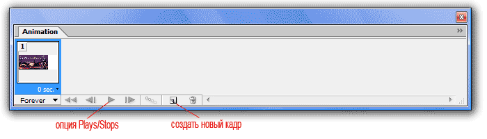 Когда все кадры созданы, проверим как «пишется» наш текст. Для этого включаем опцию Plays/Stops animations в палитре Animation.