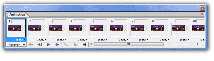 Сохраняем рисунок в формате .psd (Файл -> Сохранить как) и переходим в Image Ready: Пуск - Программы - Image Ready или Shift+Ctrl+M в английской раскладке клавиатуры.