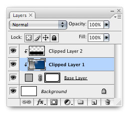 Можно настроить полупрозрачность базового слоя маски, чтобы затемнить все слоя выше него. В других словах, обтравочные слоя не только принимают форму базового слоя, но и настройки полупрозрачности. Это также относится и к режимам смешивания базового слоя. К примеру, если Вы применяете режим смешивания «Мягкий свет» для базового слоя, то этот эффект распространяется и на обтравочные слоя также.