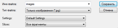 Вы можете разрезать по-другому, так, как считаете нужным. Остался последний шаг - сохранить эти фрагменты. Для этого выбираем в меню: Файл -> Сохранить для Web, выбирайте самый, с вашей точки зрения, оптимальный формат JPEG (можно и GIF, но для основы сайта я предпочитаю JPEG), щелкаем "Сохранить". В открывшемся диалоговом окне сохранения укажите следующее: